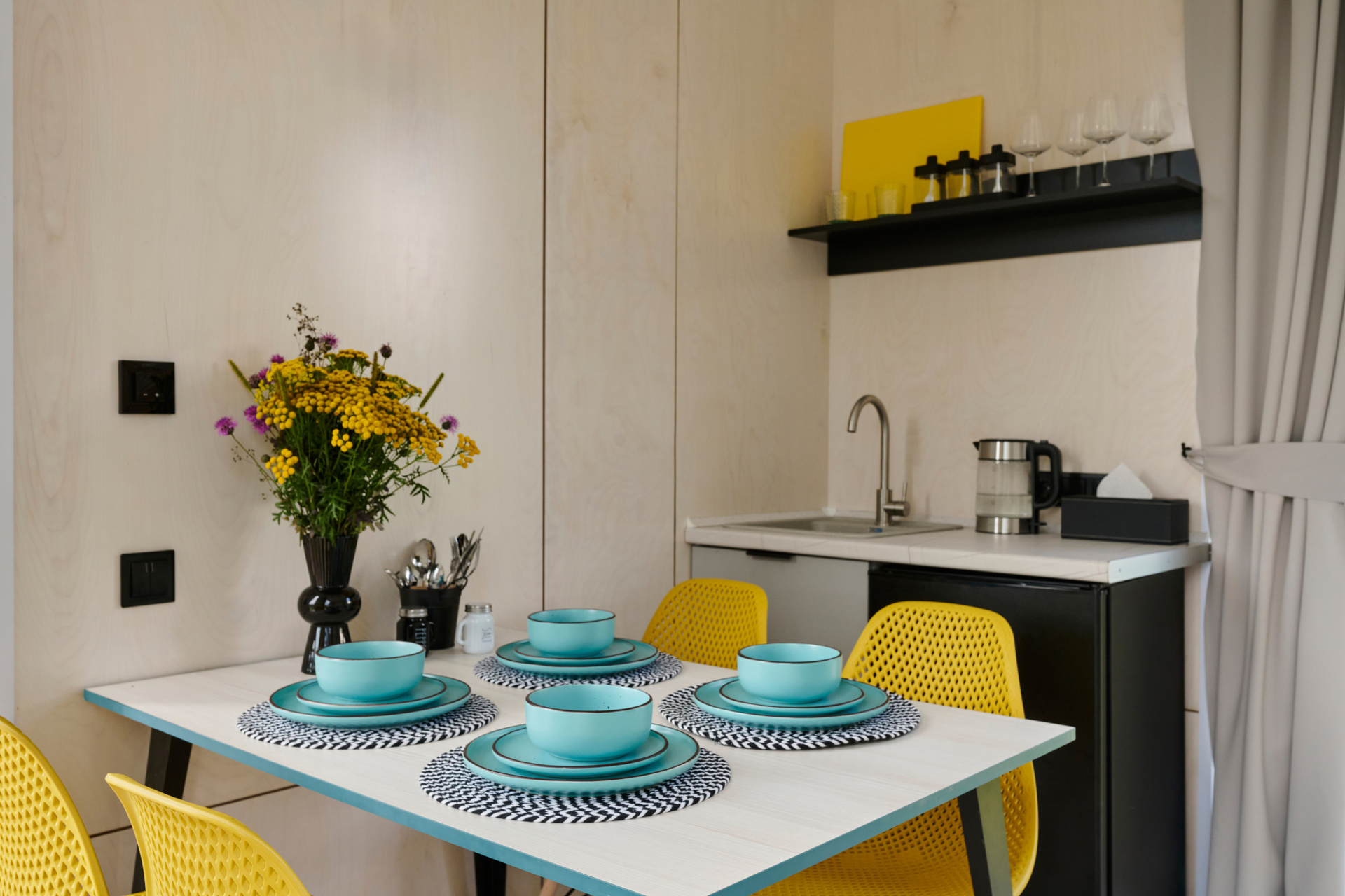 Съёмка базы отдыха «Алино» после большой стилизации со стилистом: домики A-frame, интерьер, сервис и атмосфера.