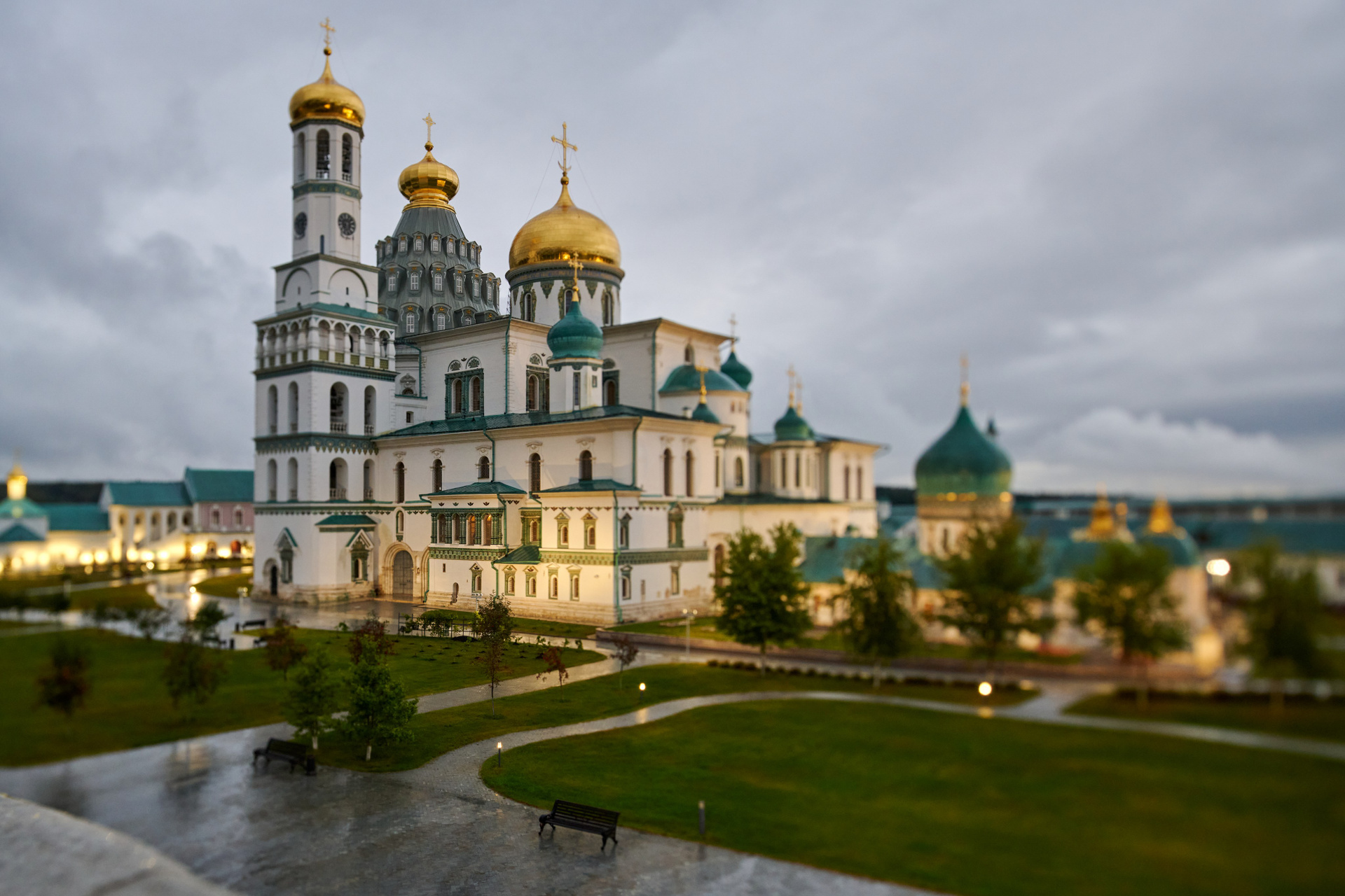 — комплекс лучше читается с дальних точек: виден общий объём и композиция