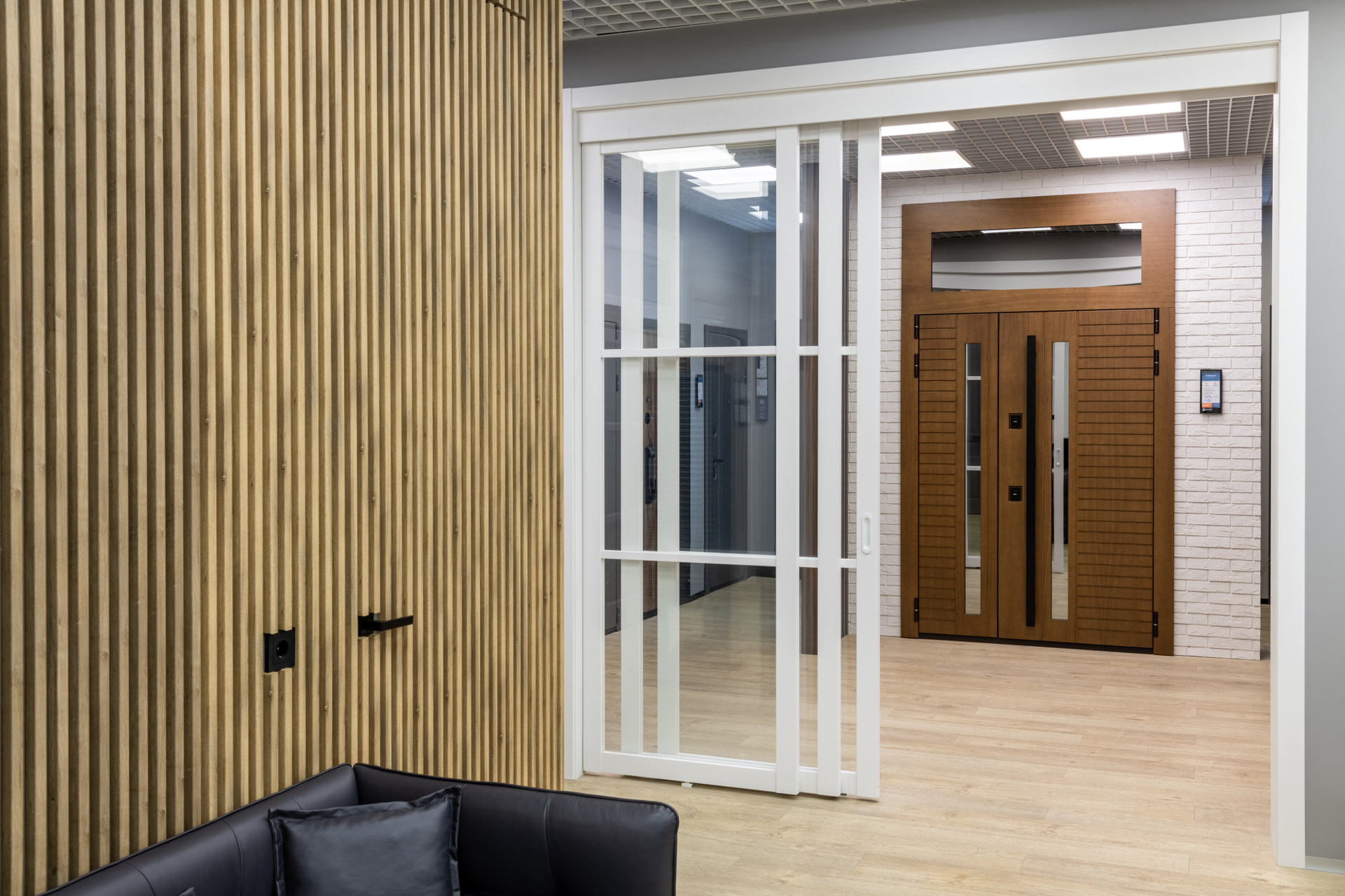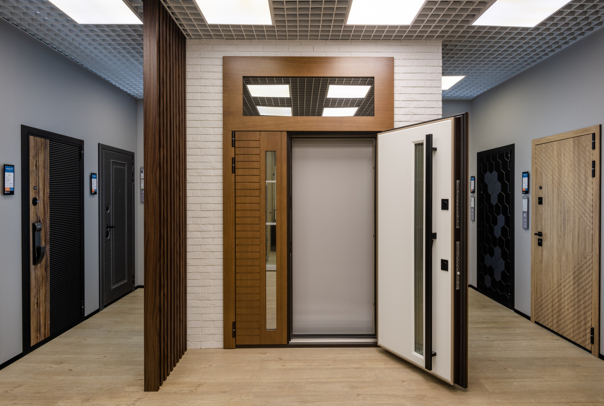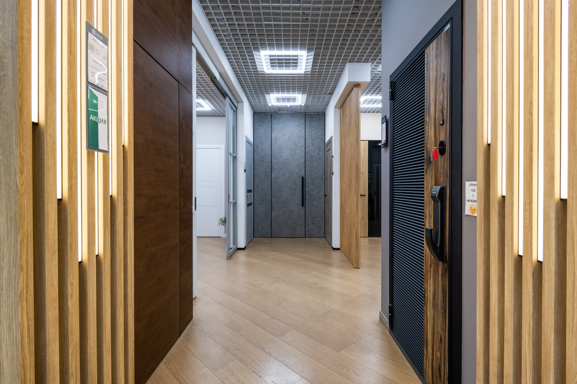 Снять серию магазинов одной сети дверей так, чтобы во всех салонах картинка выглядела единообразно: понятные планы, чистая геометрия, читаемая экспозиция и аккуратные детали. Материал нужен для сайта, карточек на картах/агрегаторах, соцсетей и рекламных объявлений.