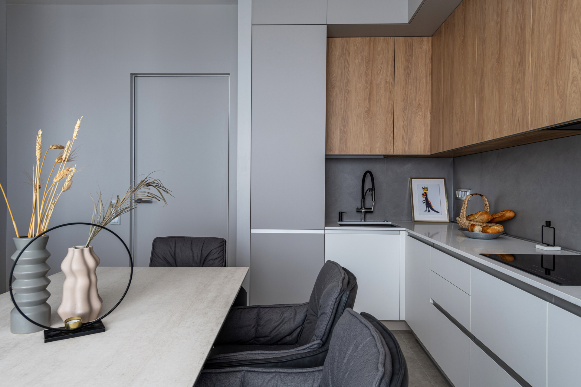 «Спокойный серый бархат» — интерьер, который держится на фактурах и тишине. Серый здесь не холодный, а мягкий:...